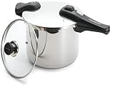 Stainless Steel Pressure CookerEveryone is looking for fast and healthy meal solutions these days, and the tried and true pressure cooker is still one of the speediest, most energy efficient, and low-fat ways to cook. This model from Chef's Design promises to cook food up to four times faster than other methods while using up to 40-percent less energy. And, with its lid locked on tight, this pressure cooker retains food's vital minerals and vitamins while producing flavorful meals.The cooker is made of brilliantly polished 18/10 stainless steel and has an encapsulated base made from an aluminum/steel alloy to promote even cooking and to allow use with any type of cooktop: gas, electric, ceramic, or induction. This gigantic 10-3/10-quart size cooks mammoth portions of lentils or rice to feed to a crowd or freeze for later. But lest folks think that pressure cookers are only for making vegetarian foods, the included recipe guide sets the record straight with complete instru ctions on how to cook delicious carnivorous treats, such as herb-roasted chicken or meatball stew.