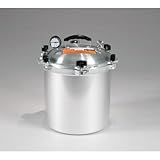Chefs Design Cast Aluminum All-American Cooker/Canner With Two Racks - 25 Qt. Liquid Capacity. 925. Pressure Cookers. The Chefs Design All-American Cooker/Canner is made of heavy cast aluminum with a metal-to-metal seal. The Cooker/Canner has a sturdy Bakelite top handle, easy to read geared steam gauge, easy on-off cover, positive action clamping wing nuts, double thickness edges, automatic overpressure release, and includes two racks. The Cooker/Canner measures 12. 25W x 16. 75H and weighs 23 pounds.- Standard Jars: 19 Pints or 7 Quarts