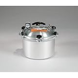 Chefs Design Cast Aluminum All-American Cooker/Canner With Rack - 15.5 Qt. Liquid Capacity. 915. Pressure Cookers. The Chefs Design All-American Cooker/Canner is made of heavy cast aluminum with a metal-to-metal seal. The Cooker/Canner has a sturdy Bakelite top handle, easy to read geared steam gauge, easy on-off cover, positive action clamping wing nuts, double thickness edges, automatic overpressure release, and includes one rack. The Cooker/Canner measures 12. 25W x 12. 25H and weighs 20 pounds.- Standard Jars: 10 Pints or 7 Quarts